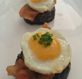 I'm really pleased with this idea. It's probably my favourite looking canapé at the moment and definitely the best tasting. Just three simple ingredients.........Morcilla ( very similar to our black pudding, but with rice and a little spice! ), streaky bacon and a quails eg...