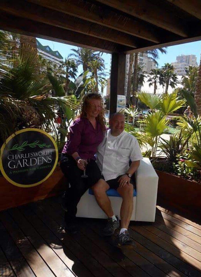 Sitting with Charlie Dimmock after winning my heat in the 2014 Costa Blanca Cook off!